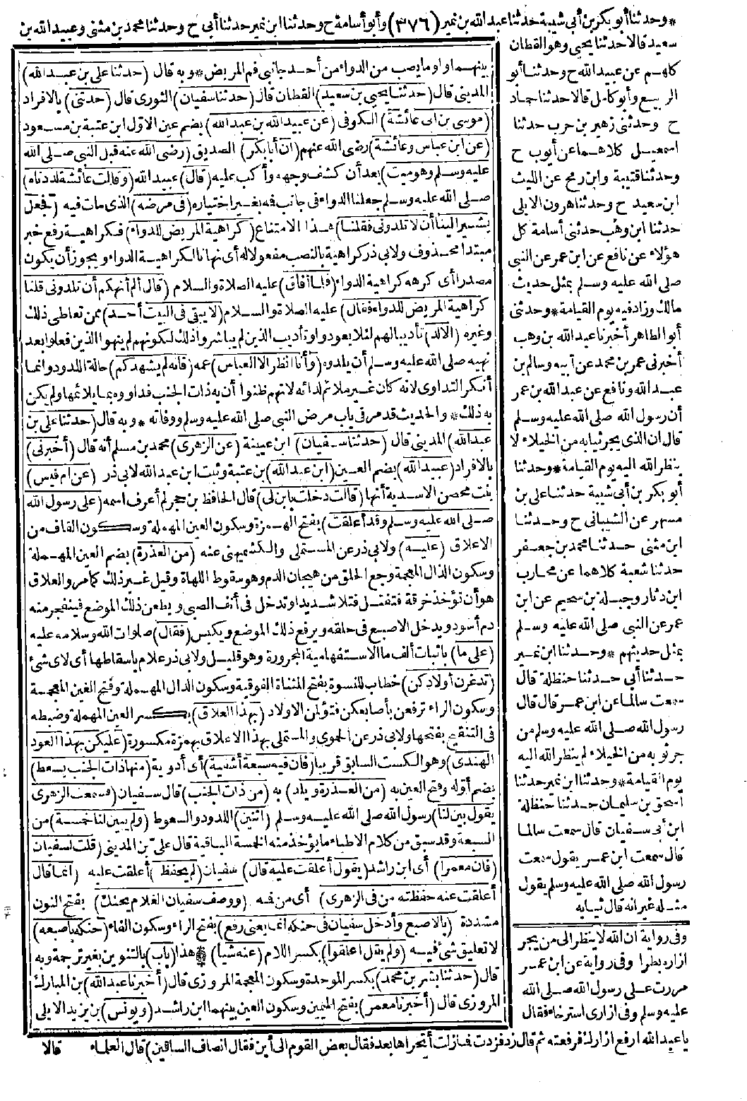 5712 - قَالَ: وَقَالَتْ عَائِشَةُ لَدَدْنَاهُ فِى مَرَضِهِ فَجَعَلَ يُشِيرُ إِلَيْنَا أَنْ لاَ تَلُدُّونِى فَقُلْنَا كَرَاهِيَةُ الْمَرِيضِ لِلدَّوَاءِ فَلَمَّا أَفَاقَ قَالَ: «أَلَمْ أَنْهَكُمْ أَنْ تَلُدُّونِى»؟ قُلْنَا كَرَاهِيَةَ الْمَرِيضِ لِلدَّوَاءِ فَقَالَ: «لاَ يَبْقَى فِى الْبَيْتِ أَحَدٌ إِلاَّ لُدَّ» وَأَنَا أَنْظُرُ إِلاَّ الْعَبَّاسَ فَإِنَّهُ لَمْ يَشْهَدْكُمْ.