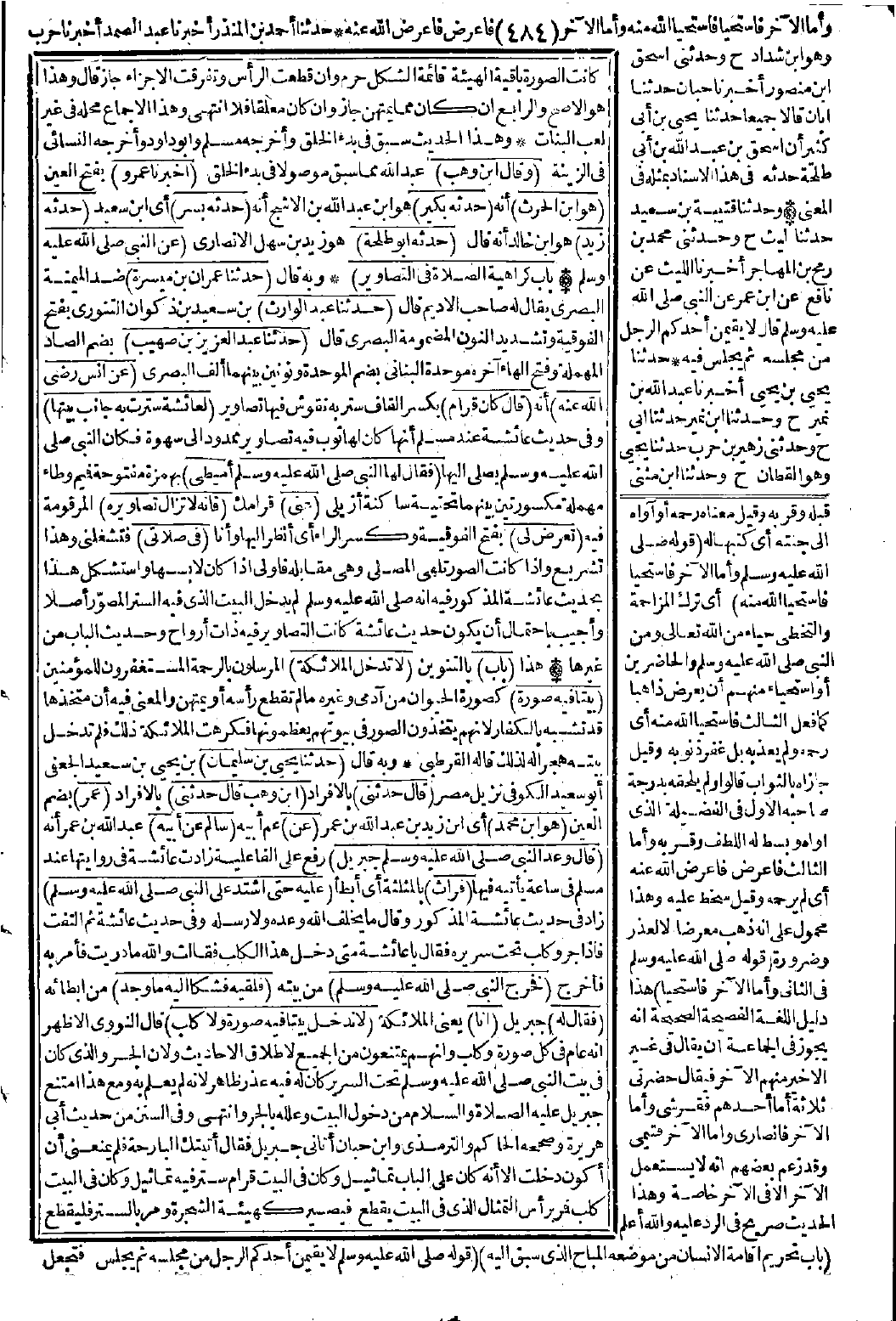 أَنَسٍ - رضى الله عنه - قَالَ: كَانَ قِرَاَمٌ لِعَائِشَةَ سَتَرَتْ بِهِ جَانِبَ بَيْتِهَا فَقَالَ لَهَا النَّبِىُّ -صَلَّى اللَّهُ عَلَيْهِ وَسَلَّمَ-: «أَمِيطِى عَنِّى فَإِنَّهُ لاَ تَزَالُ تَصَاوِيرُهُ تَعْرِضُ لِى فِى صَلاَتِى».