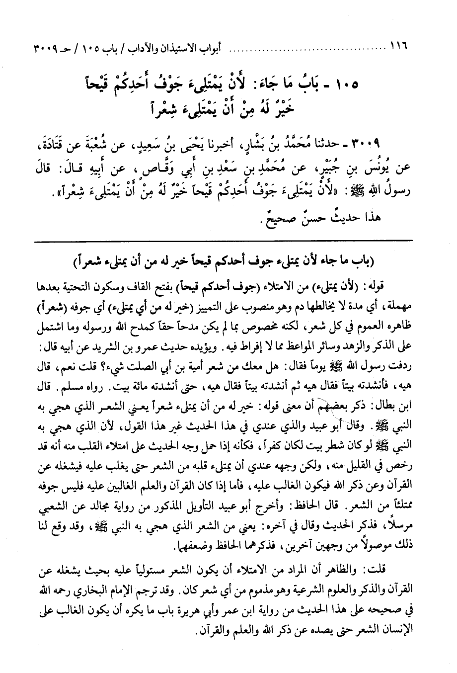 105 - (باب ما جاء لأن يمتلىء جوف أحدكم قيحا)