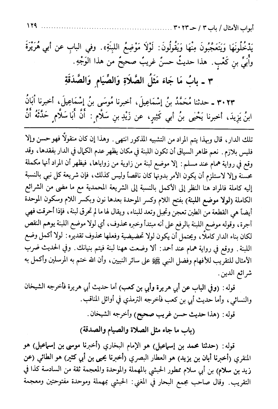 قَوْلُهُ (حَدَّثَنَا مُحَمَّدُ بْنُ إِسْمَاعِيلَ) هُوَ الْإِمَامُ الْبُخَارِيُّ (أَخْبَرَنَا مُوسَى بْنُ إِسْمَاعِيلَ) هُوَ الْمِنْقَرِيُّ (أَخْبَرَنَا أَبَانُ بْنُ يَزِيدَ) هُوَ الْعَطَّارُ الْبَصْرِيُّ (أَخْبَرَنَا يَحْيَى بْنُ أَبِي كَثِيرٍ) هُوَ الطَّائِيُّ (عَنْ زَيْدِ بْنِ سَلَّامٍ) بْنِ أَبِي سَلَّامٍ مَمْطُورٍ الْحَبَشِيِّ بِالْمُهْمَلَةِ وَالْمُوَحَّدَةِ وَالْمُعْجَمَةِ ثِقَةٌ مِنَ السَّادِسَةِ كَذَا فِي التَّقْرِيبِ