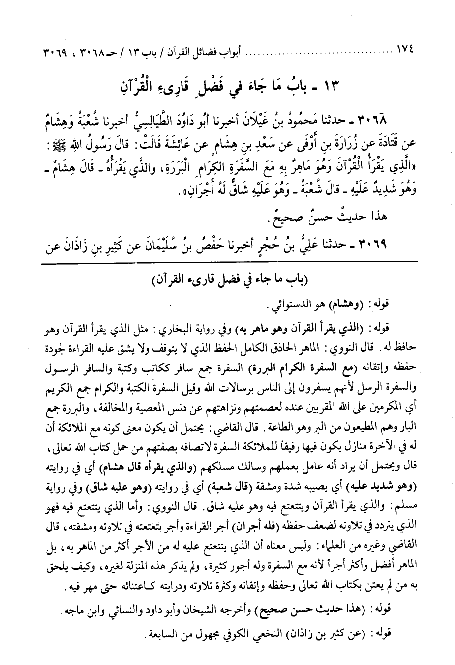 قَوْلُهُ (وَهِشَامٌ) هُوَ الدَّسْتُوَائِيُّ قَوْلُهُ (الَّذِي يَقْرَأُ الْقُرْآنَ وَهُوَ مَاهِرٌ بِهِ) وَفِي رِوَايَةِ الْبُخَارِيِّ مَثَلُ الَّذِي يَقْرَأُ الْقُرْآنَ وَهُوَ حَافِظٌ لَهُ