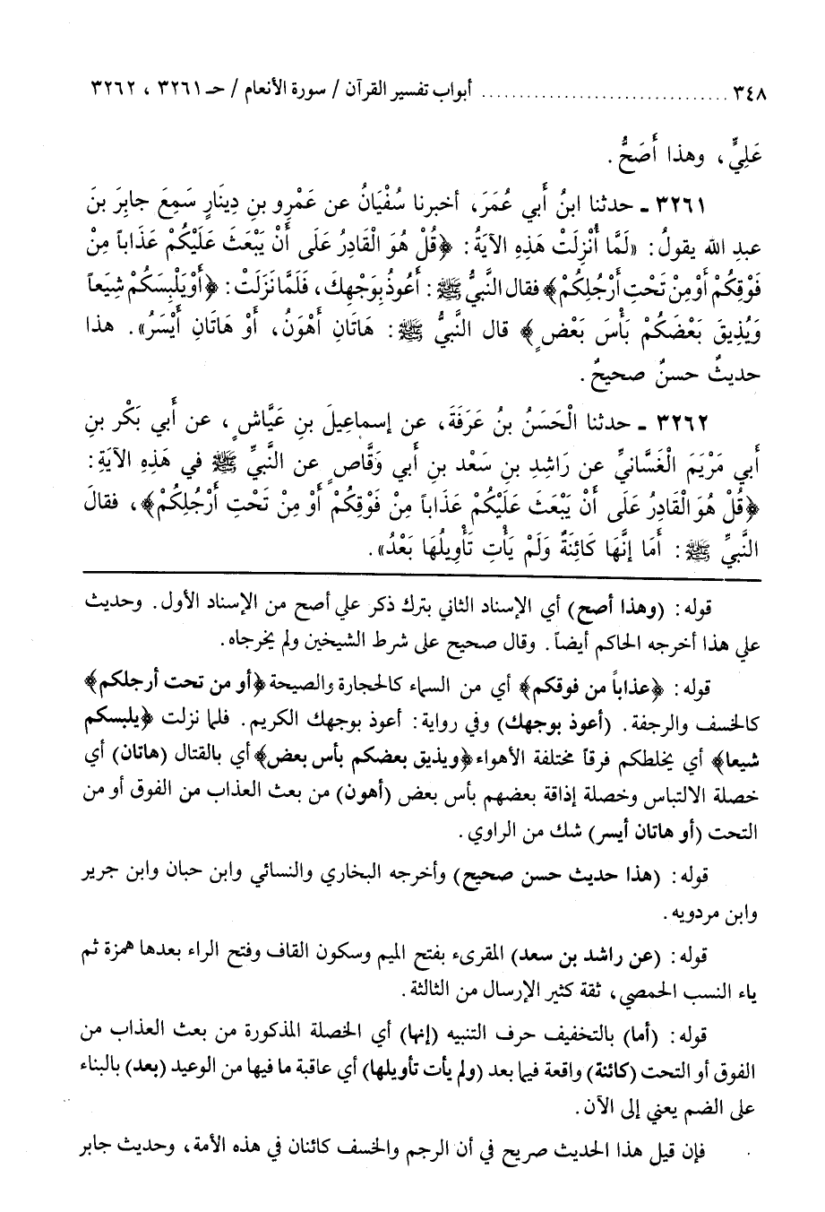 فَلَمَّا نَزَلَتْ يُلْبِسَكُمْ شِيَعًا أَيْ يَخْلِطَكُمْ فِرَقًا مُخْتَلِفَةَ الْأَهْوَاءِ وَيُذِيقَ بَعْضَكُمْ بَأْسَ بَعْضٍ أَيْ بِالْقِتَالِ (هَاتَانِ) أَيْ خَصْلَةُ الِالْتِبَاسِ وَخَصْلَةُ إِذَاقَةِ بَعْضِهِمْ بَأْسَ بَعْضٍ (أَهْوَنُ) مِنْ بَعْثِ الْعَذَابِ مِنَ الْفَوْقِ أَوْ مِنَ التَّحْتِ (أَوْ هَاتَانِ أَيْسَرُ) شَكٌّ مِنَ الرَّاوِي