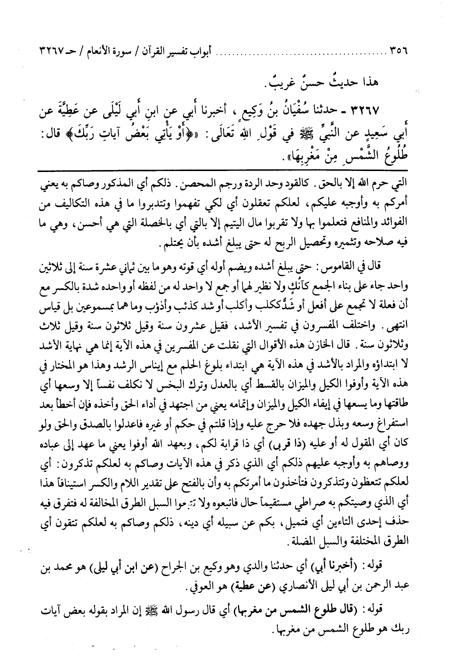 قَوْلُهُ (قَالَ طُلُوعُ الشَّمْسِ مِنْ مَغْرِبِهَا) أي قال رسول الله إِنَّ الْمُرَادَ بِقَوْلِهِ بَعْضُ آيَاتِ رَبِّكَ هُوَ طُلُوعُ الشَّمْسِ مِنْ مَغْرِبِهَا