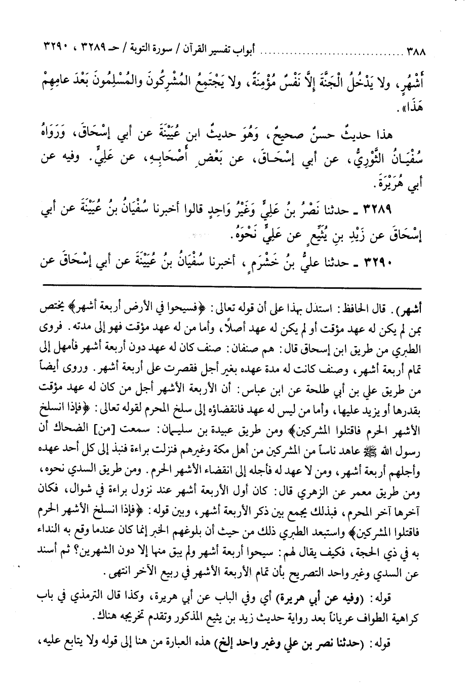 فروى الطبري من طريق بن إِسْحَاقَ قَالَ هُمْ صِنْفَانِ صِنْفٌ كَانَ لَهُ عَهْدٌ دُونَ أَرْبَعَةِ أَشْهُرٍ فَأُمْهِلَ إِلَى تَمَامِ أَرْبَعَةِ أَشْهُرٍ وَصِنْفٌ كَانَتْ لَهُ مُدَّةٌ عَهْدِهِ بِغَيْرِ أَجَلٍ فَقُصِرَتْ عَلَى أَرْبَعَةِ أَشْهُرٍ
