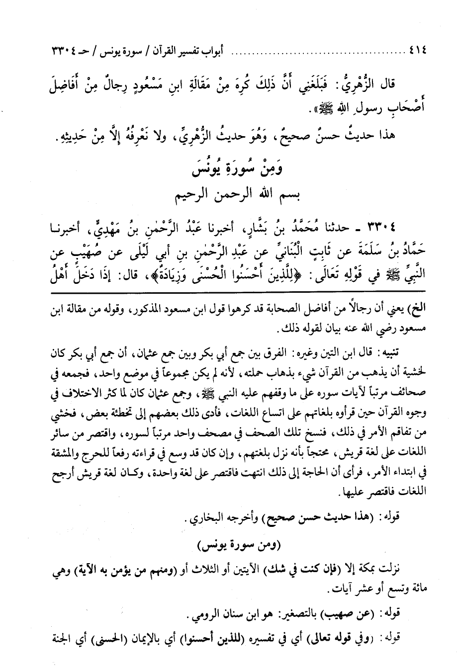 1 - بَاب وَمِنْ سُورَةِ يُونُسَ نَزَلَتْ بِمَكَّةَ إِلَّا (فَإِنْ كنت في شك) الْآيَتَيْنِ أَوِ الثَّلَاثِ أَوْ (وَمِنْهُمْ مَنْ يُؤْمِنُ به الْآيَةَ) وَهِيَ مِائَةٌ وَتِسْعٌ أَوْ عَشْرُ آيَاتٍ