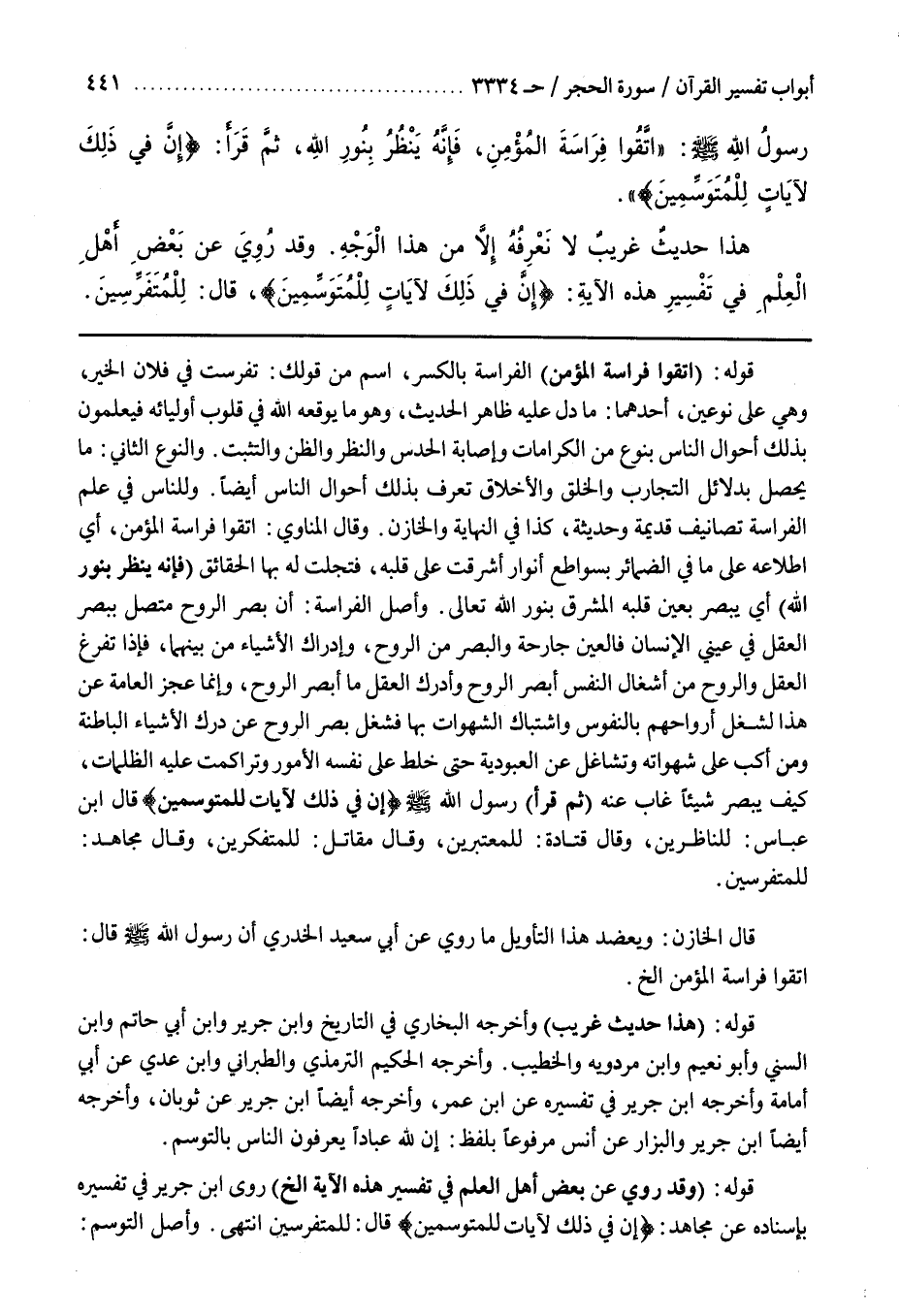 قال الْخَازِنُ وَيُعَضِّدُ هذا للتأويل مَا رُوِيَ عَنْ أَبِي سَعِيدٍ الْخُدْرِيِّ أَنَّ رَسُولَ اللَّهِ صَلَّى الله عليه وسلم قال اتقوا فراسة المؤمن إِلَخْ