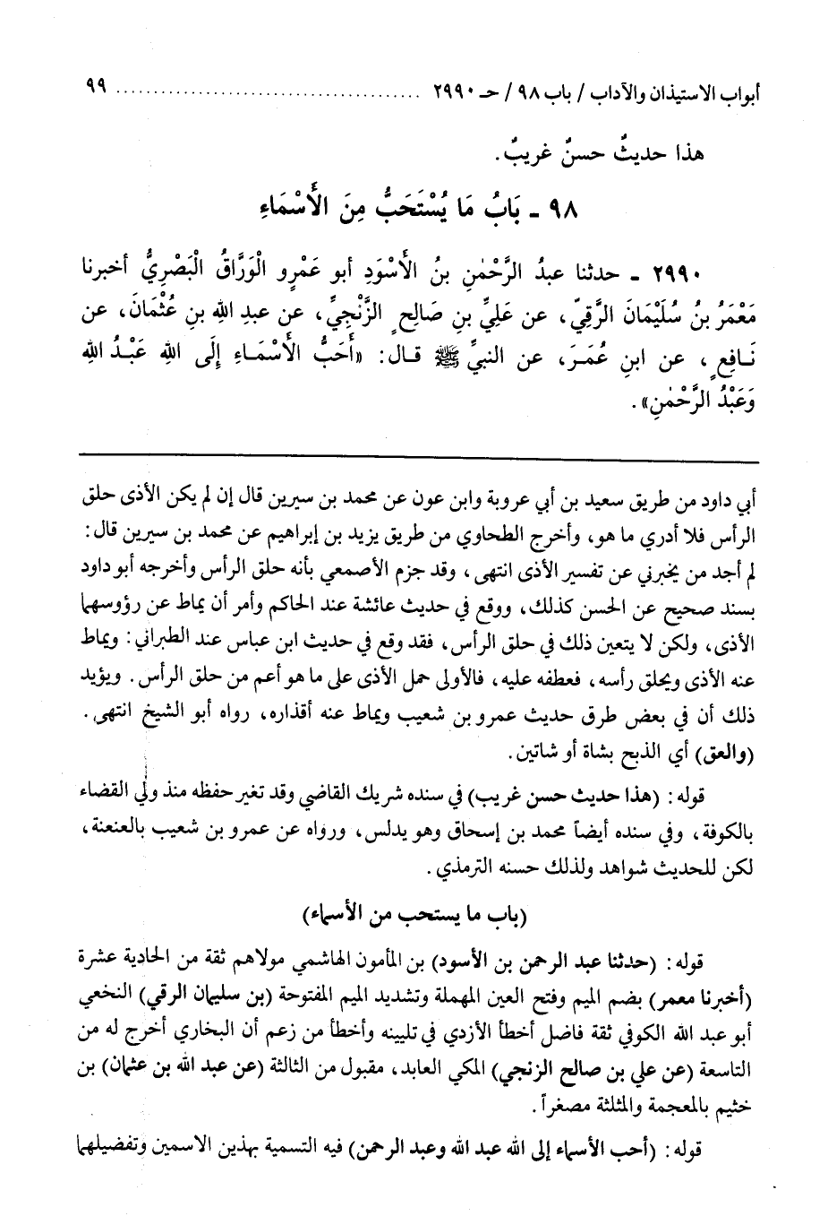 قَوْلُهُ (أَحَبُّ الْأَسْمَاءِ إِلَى اللَّهِ عَبْدُ اللَّهِ وَعَبْدُ الرَّحْمَنِ) فِيهِ التَّسْمِيَةُ بِهَذَيْنِ الِاسْمَيْنِ وتفضيلهما
