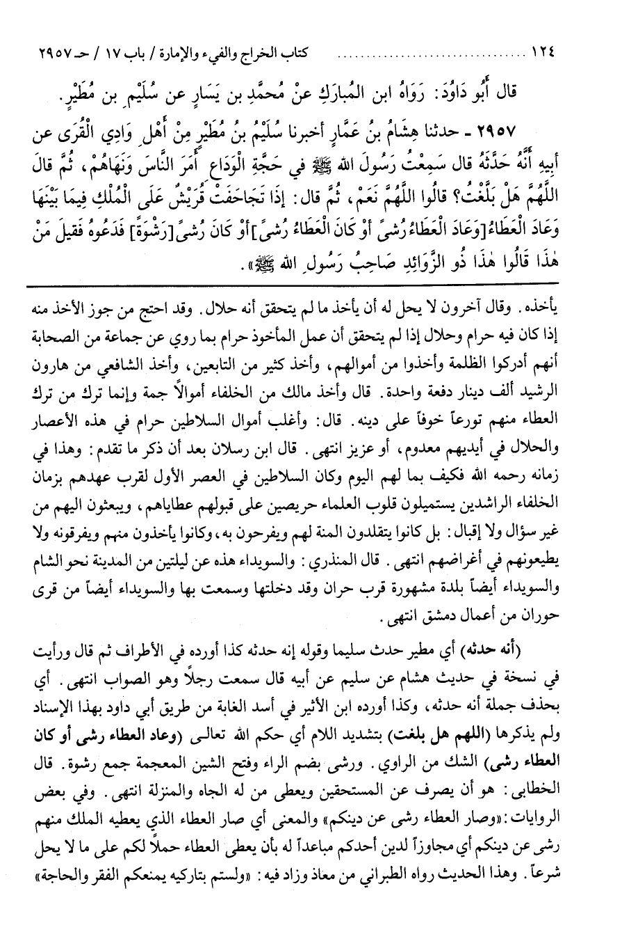 أَيْ بِحَذْفِ جُمْلَةٍ أَنَّهُ حَدَّثَهُ وكذا أورده بن الْأَثِيرِ فِي أُسْدِ الْغَابَةِ مِنْ طَرِيقِ أَبِي دَاوُدَ بِهَذَا الْإِسْنَادِ وَلَمْ يَذْكُرْهَا (اللَّهُمَّ هَلْ بَلَّغْتُ) بِتَشْدِيدِ اللَّامِ أَيْ حُكْمَ اللَّهِ تَعَالَى (وعاد العطاء رشى أو كان العطاء رشى) الشك من الراوي