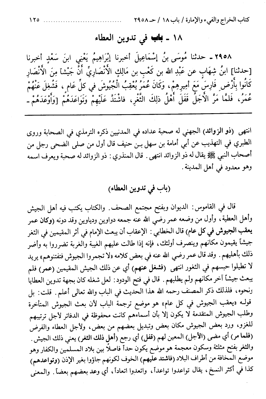 قَالَ فِي فَتْحِ الْوَدُودِ لَعَلَّ شَغْلُهُ كَانَ بِجِهَةِ تَدْوِينِ الْعَطَايَا وَنَحْوِهِ فَلِذَلِكَ ذَكَرَ الْمُصَنِّفُ رَحِمَهُ اللَّهُ هَذَا الْحَدِيثَ فِي الْبَابِ وَاللَّهُ تَعَالَى أَعْلَمُ