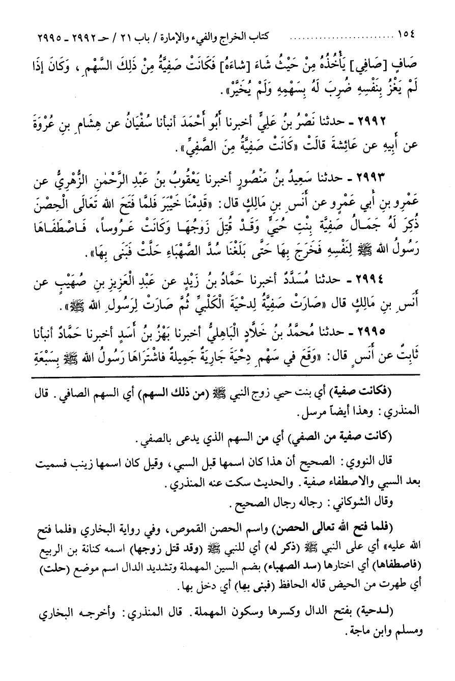 [2993] (فَكَانَتْ صَفِيَّةُ) أَيْ بِنْتُ حُيَيٍّ زَوْجُ النَّبِيُّ صَلَّى اللَّهُ عَلَيْهِ وَسَلَّمَ (مِنْ ذَلِكَ السَّهْمِ) أَيِ السَّهْمِ الصَّافِي