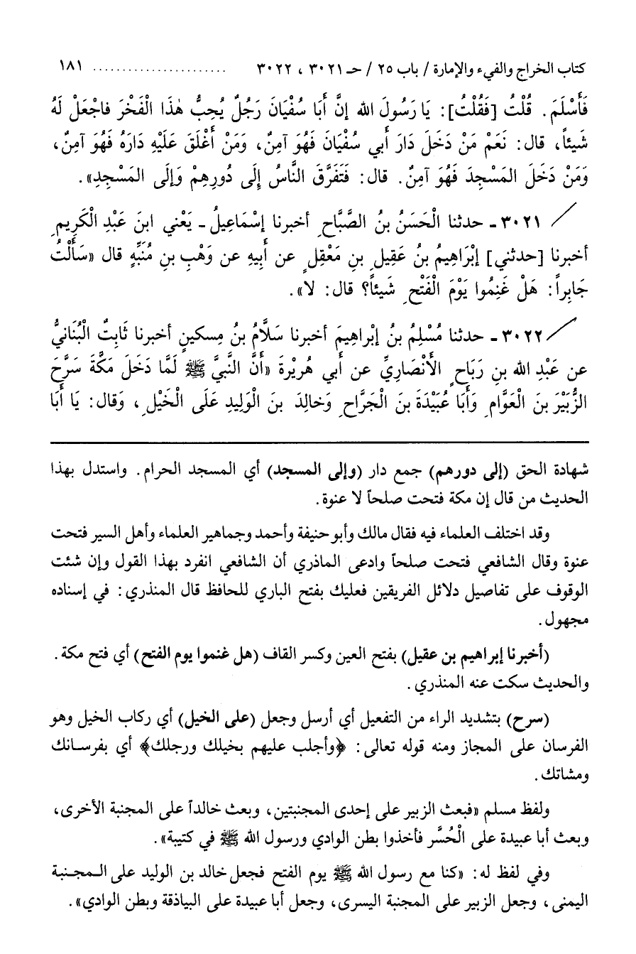 [3023] (أَخْبَرَنَا إِبْرَاهِيمُ بْنُ عَقِيلٍ) بِفَتْحِ الْعَيْنِ وَكَسْرِ الْقَافِ (هَلْ غَنِمُوا يَوْمَ الْفَتْحِ) أَيْ فَتْحِ مَكَّةَ