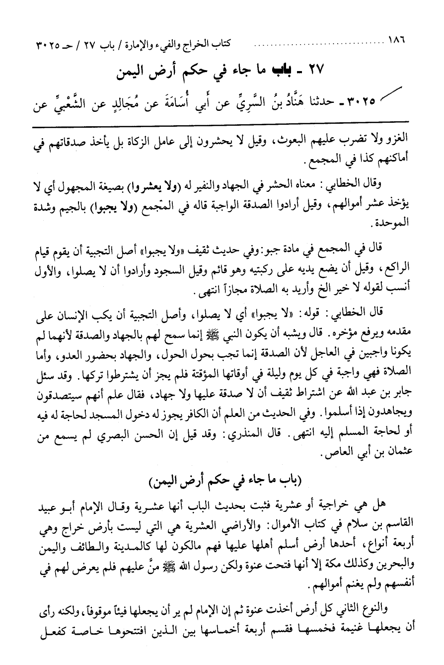 ([3027] بَاب مَا جَاءَ فِي حُكْمِ أَرْضِ الْيَمَنِ هَلْ هِيَ خَرَاجِيَّةٌ أَوْ عُشْرِيَّةٌ)