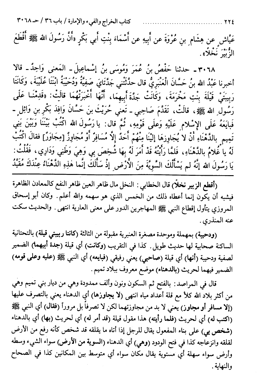(أَقْطَعَ الزُّبَيْرَ نَخْلًا) قَالَ الْخَطَّابِيُّ النَّخْلُ مَالٌ ظَاهِرُ الْعَيْنِ ظَاهِرُ النَّفْعِ كَالْمَعَادِنِ الظَّاهِرَةِ فَيُشْبِهُ أَنْ يَكُونَ إِنَّمَا أَعْطَاهُ ذَلِكَ مِنَ الْخُمُسِ الَّذِي هُوَ سَهْمُهُ وَاللَّهُ أَعْلَمُ