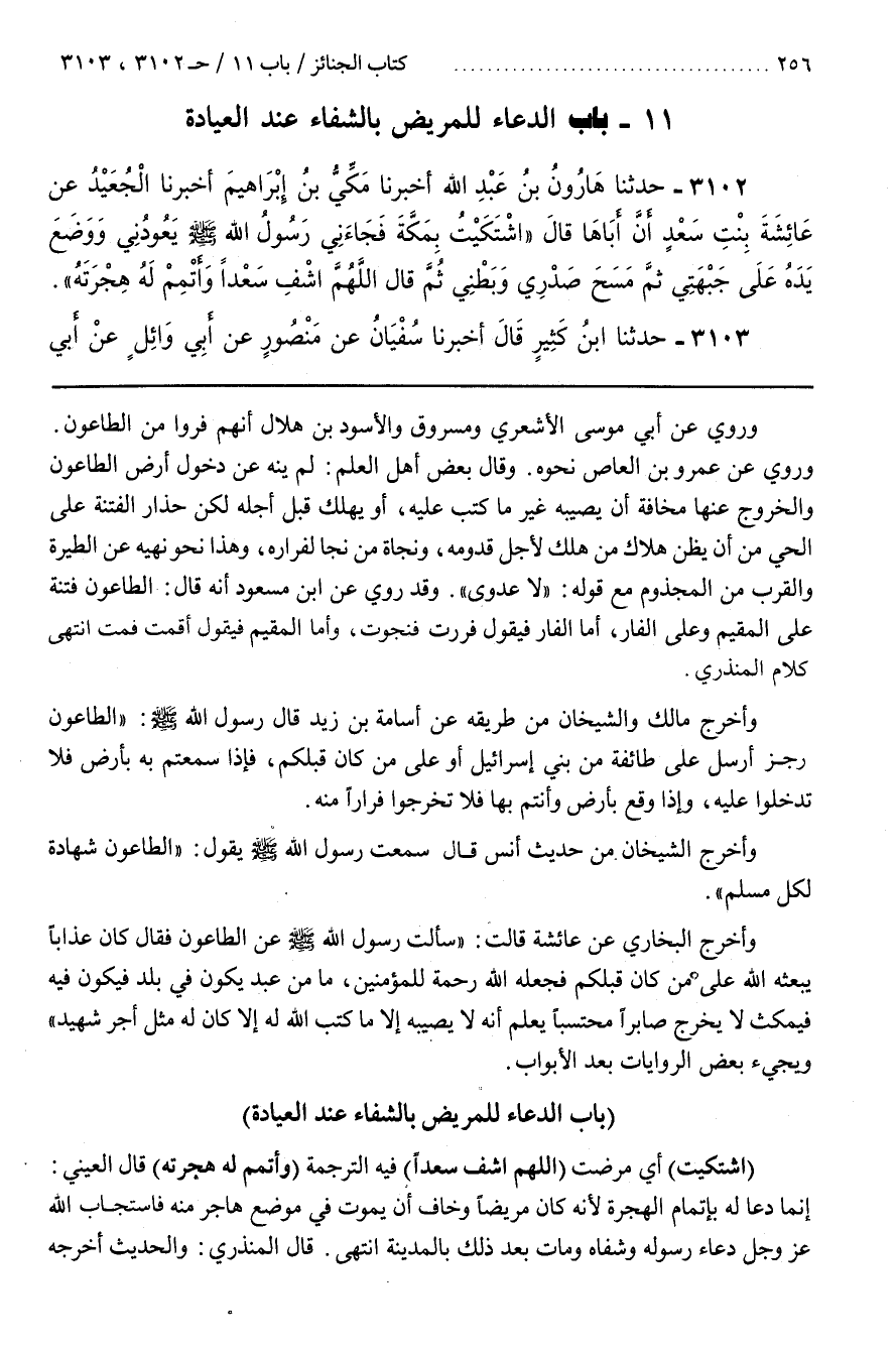 ([3104] بَاب الدُّعَاءِ لِلْمَرِيضِ بِالشِّفَاءِ عِنْدَ الْعِيَادَةِ)
