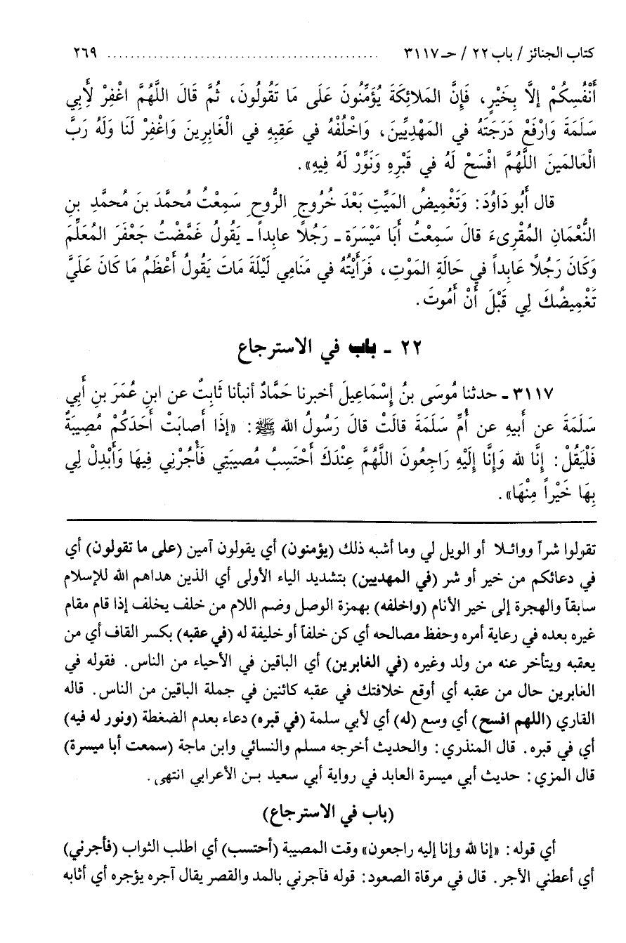 [3119] أَيْ قَوْلُهُ إِنَّا لِلَّهِ وَإِنَّا إِلَيْهِ رَاجِعُونَ وقت المصيبة