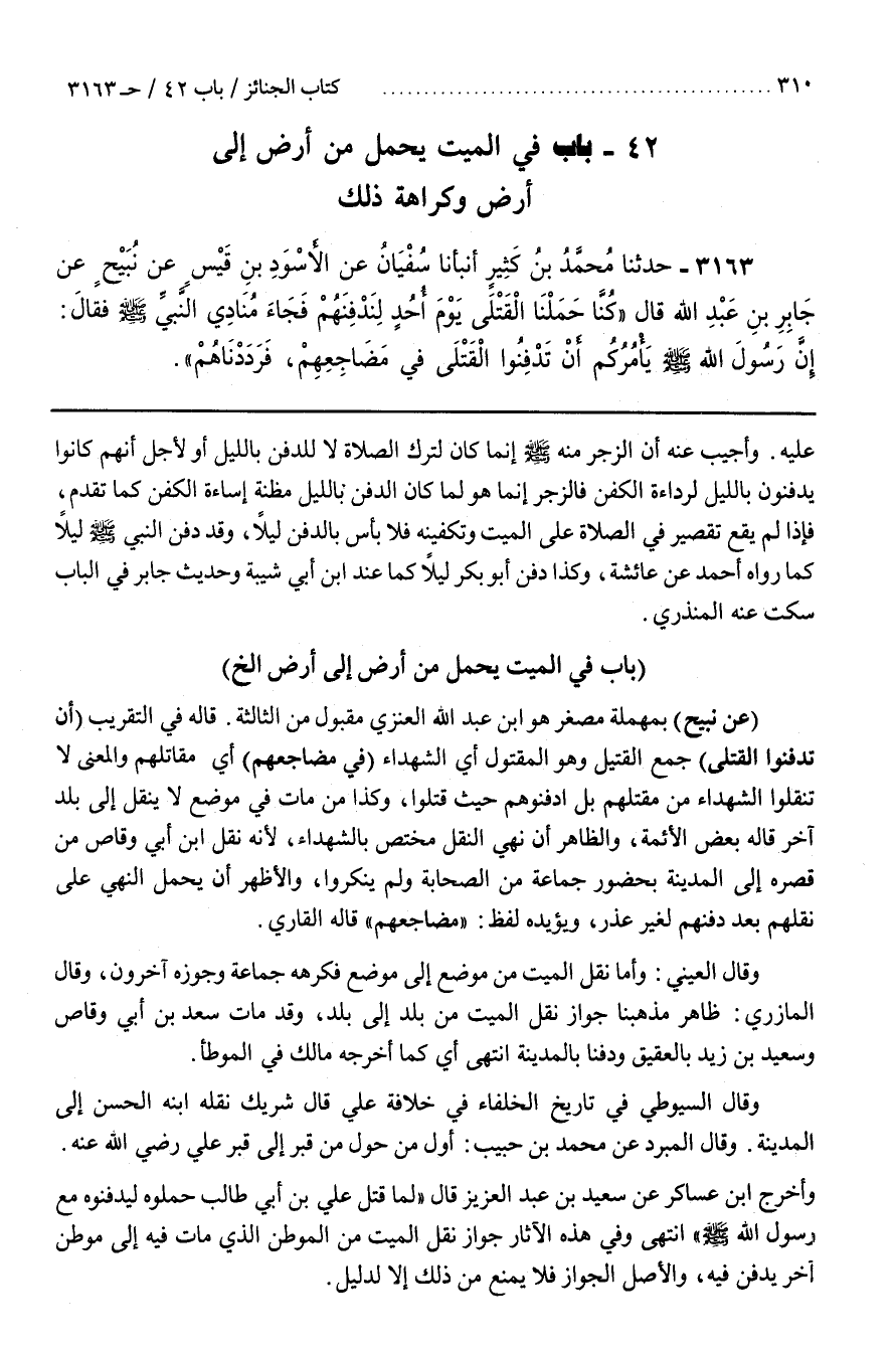 1 - (بَاب فِي الْمَيِّتِ يُحْمَلُ مِنْ أرض إلى أرض)