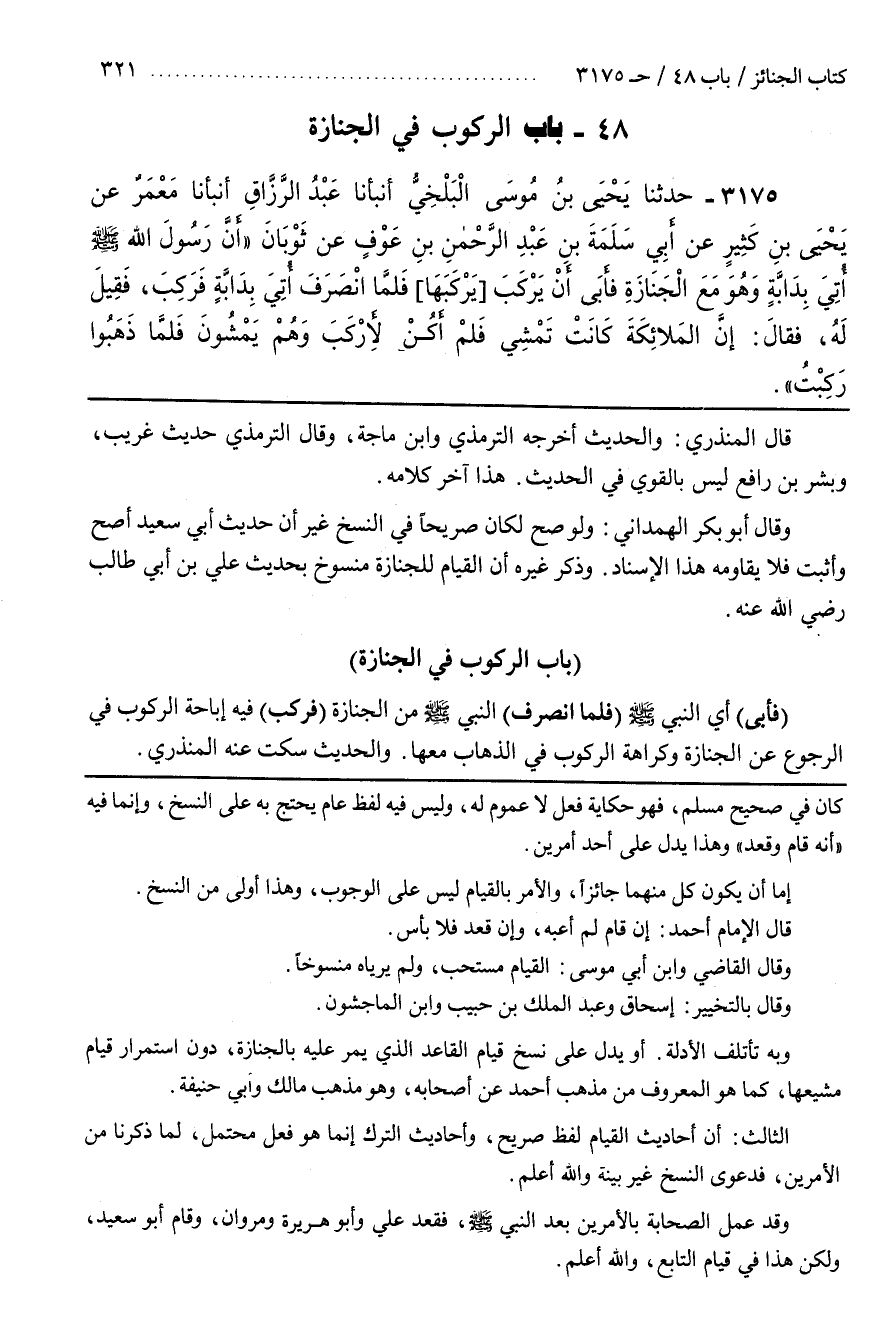 [3177] (فَأَبَى) أَيِ النَّبِيُّ صَلَّى اللَّهُ عَلَيْهِ وَسَلَّمَ (فَلَمَّا انْصَرَفَ) النَّبِيُّ صَلَّى اللَّهُ عَلَيْهِ وَسَلَّمَ مِنَ الْجِنَازَةِ (فَرَكِبَ) فِيهِ إِبَاحَةُ الرُّكُوبِ فِي الرُّجُوعِ عَنِ الْجِنَازَةِ وَكَرَاهَةُ الرُّكُوبِ فِي الذَّهَابِ مَعَهَا