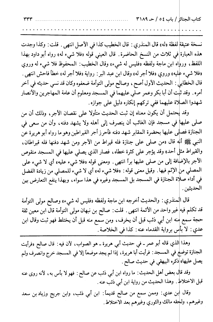 ــــــــــــQوَهَذَا الَّذِي قَالَهُ أَبُو عُمَر فِي حَدِيث أَبِي هُرَيْرَة هُوَ الصَّوَاب لِأَنَّ فِيهِ قَالَ صَالِح فَرَأَيْت الْجَنَازَة تُوضَع فِي الْمَسْجِد فَرَأَيْت أَبَا هُرَيْرَة إِذَا لَمْ يَجِد مَوْضِعًا إِلَّا فِي الْمَسْجِد خَرَجَ وَانْصَرَفَ وَلَمْ يُصَلِّ عَلَيْهَا ذَكَرَهُ الْبَيْهَقِيُّ فِي حَدِيث صَالِح