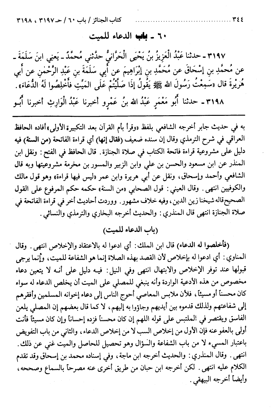 وَوَرَدَتْ أَحَادِيثُ أُخَرُ فِي قِرَاءَةِ الْفَاتِحَةِ فِي صَلَاةِ الْجِنَازَةِ انْتَهَى قَالَ الْمُنْذِرِيُّ وَالْحَدِيثُ أَخْرَجَهُ الْبُخَارِيُّ وَالتِّرْمِذِيُّ وَالنَّسَائِيُّ