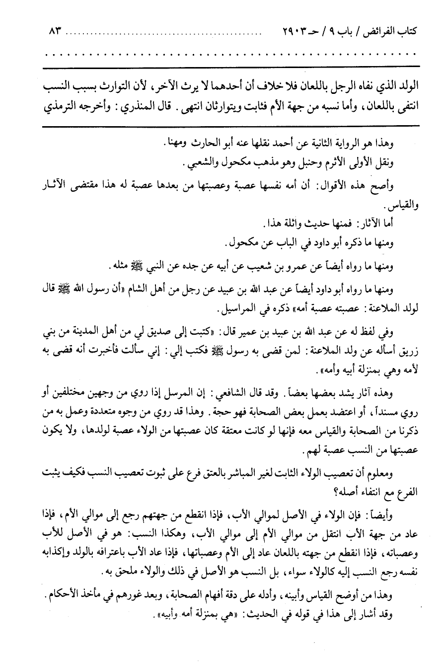 وَمَعْلُوم أَنَّ تَعْصِيب الْوَلَاء الثَّابِت لِغَيْرِ الْمُبَاشَر بِالْعِتْقِ فَرْع عَلَى ثُبُوت تَعْصِيب النَّسَب فَكَيْف يَثْبُت الْفَرْع مَعَ اِنْتِفَاء أَصْله وَأَيْضًا فَإِنَّ الْوَلَاء فِي الْأَصْل لِمَوَالِي الْأَب فَإِذَا اِنْقَطَعَ مِنْ جِهَتهمْ رَجَعَ إِلَى مَوَالِي الْأُمّ فَإِذَا عَادَ مِنْ جِهَة الْأَب اِنْتَقَلَ مِنْ مَوَالِي الْأُمّ إِلَى مَوَالِي الْأَب وَهَكَذَا النَّسَب هُوَ فِي الْأَصْل لِلْأَبِ وَعَصَبَاته فَإِذَا اِنْقَطَعَ مِنْ جِهَته بِاللِّعَانِ عَادَ إِلَى الْأُمّ وَعَصَبَاتهَا فَإِذَا عَادَ إِلَى الْأَب بِاعْتِرَافِهِ بِالْوَلَدِ وَإِكْذَابه نَفْسه رَجَعَ النَّسَب إِلَيْهِ كَالْوَلَاءِ سَوَاء بَلْ النَّسَب هُوَ الْأَصْل فِي ذَلِكَ وَالْوَلَاء مُلْحَق بِهِ