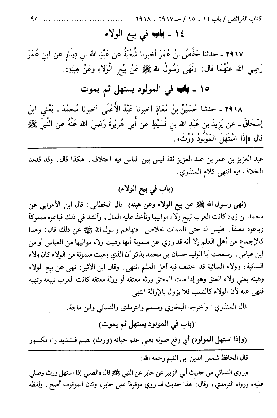 [2919] (نَهَى رَسُولُ اللَّهِ صَلَّى اللَّهُ عَلَيْهِ وَسَلَّمَ عَنْ بَيْعِ الْوَلَاءِ وَعَنْ هِبَتِهِ) قَالَ الْخَطَّابِيُّ قال بن الْأَعْرَابِيِّ عَنْ مُحَمَّدِ بْنِ زِيَادٍ كَانَتِ الْعَرَبُ تَبِيعُ وَلَاءَ مَوَالِيهَا وَتَأْخُذُ عَلَيْهِ الْمَالَ وَأَنْشَدَ فِي ذَلِكَ فَبَاعُوهُ مَمْلُوكًا وَبَاعُوهُ مُعْتَقًا