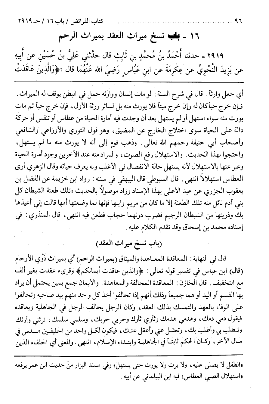[2921] قَالَ فِي النِّهَايَةِ الْمُعَاقَدَةُ الْمُعَاهَدَةُ وَالْمِيثَاقُ (بِمِيرَاثِ الرحم) أي بميراث ذوي الأرحام
