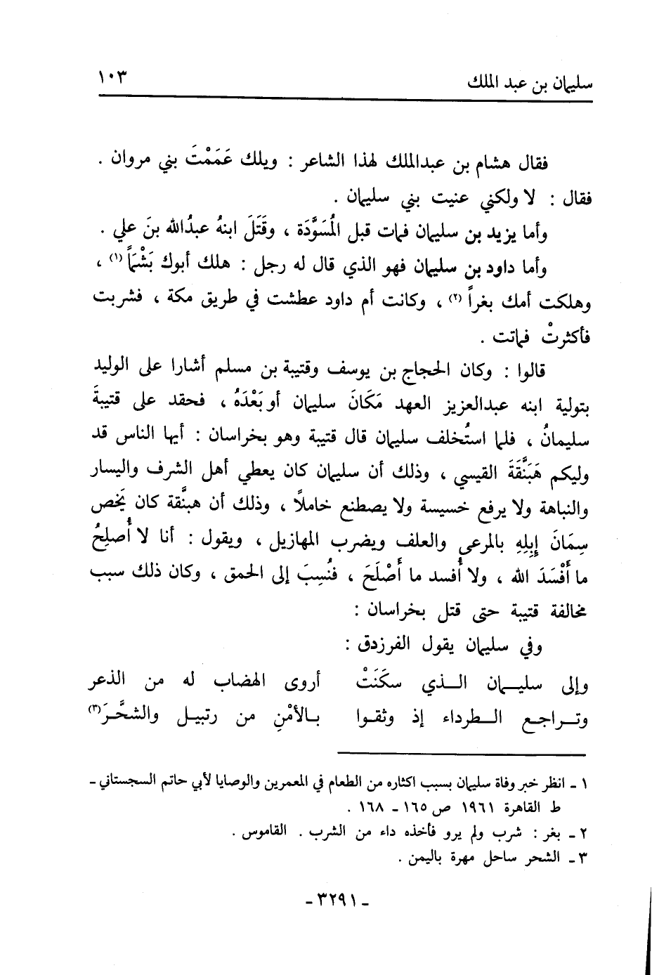 [1] انظر خبر وفاة سليمان بسبب إكثاره من الطعام في المعمرين والوصايا لأبي حاتم السجستاني- ط القاهرة 1961 ص 165- 168.