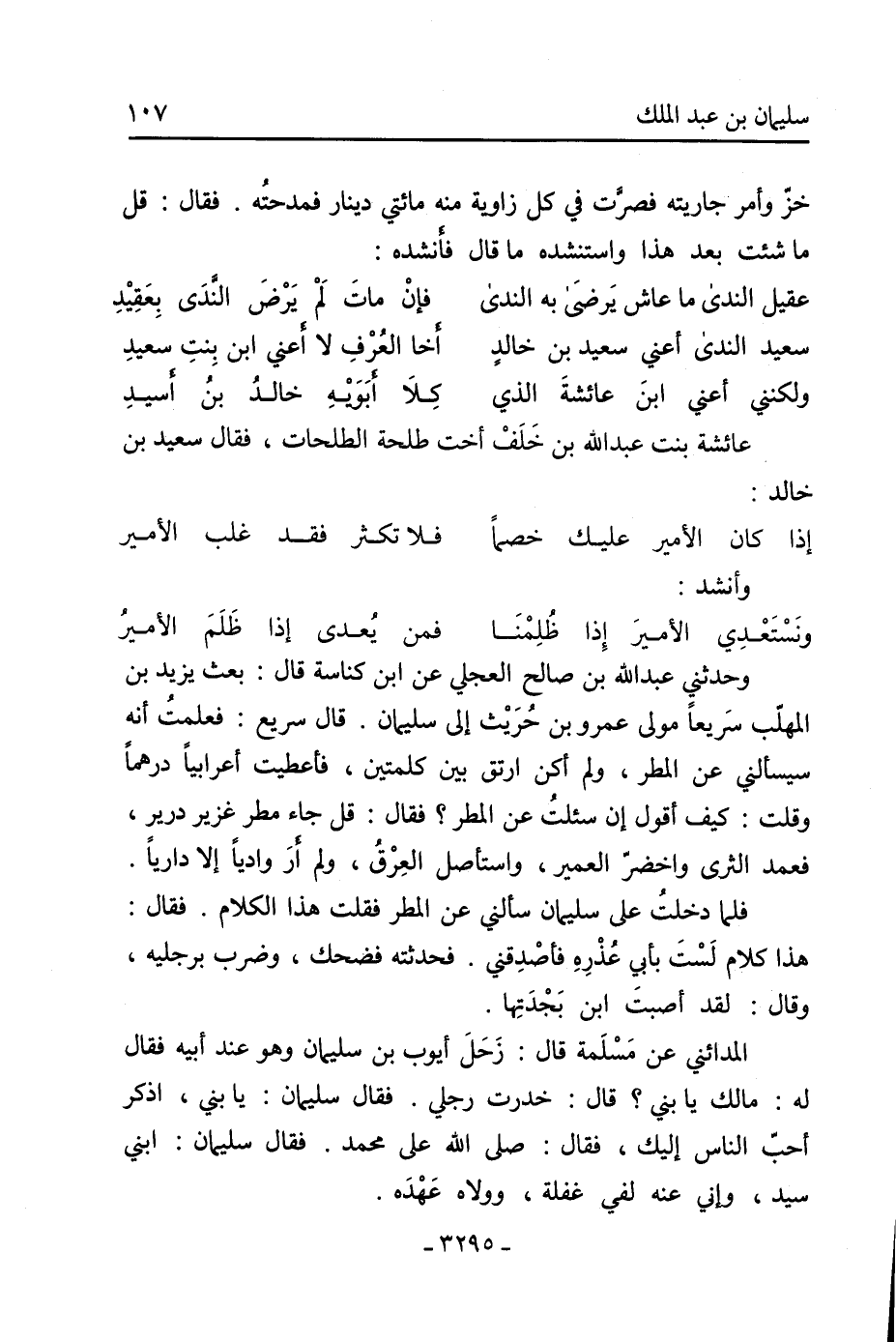 فلما دخلت على سليمان سألني عن المطر فقلت هذا الكلام. فقال:
