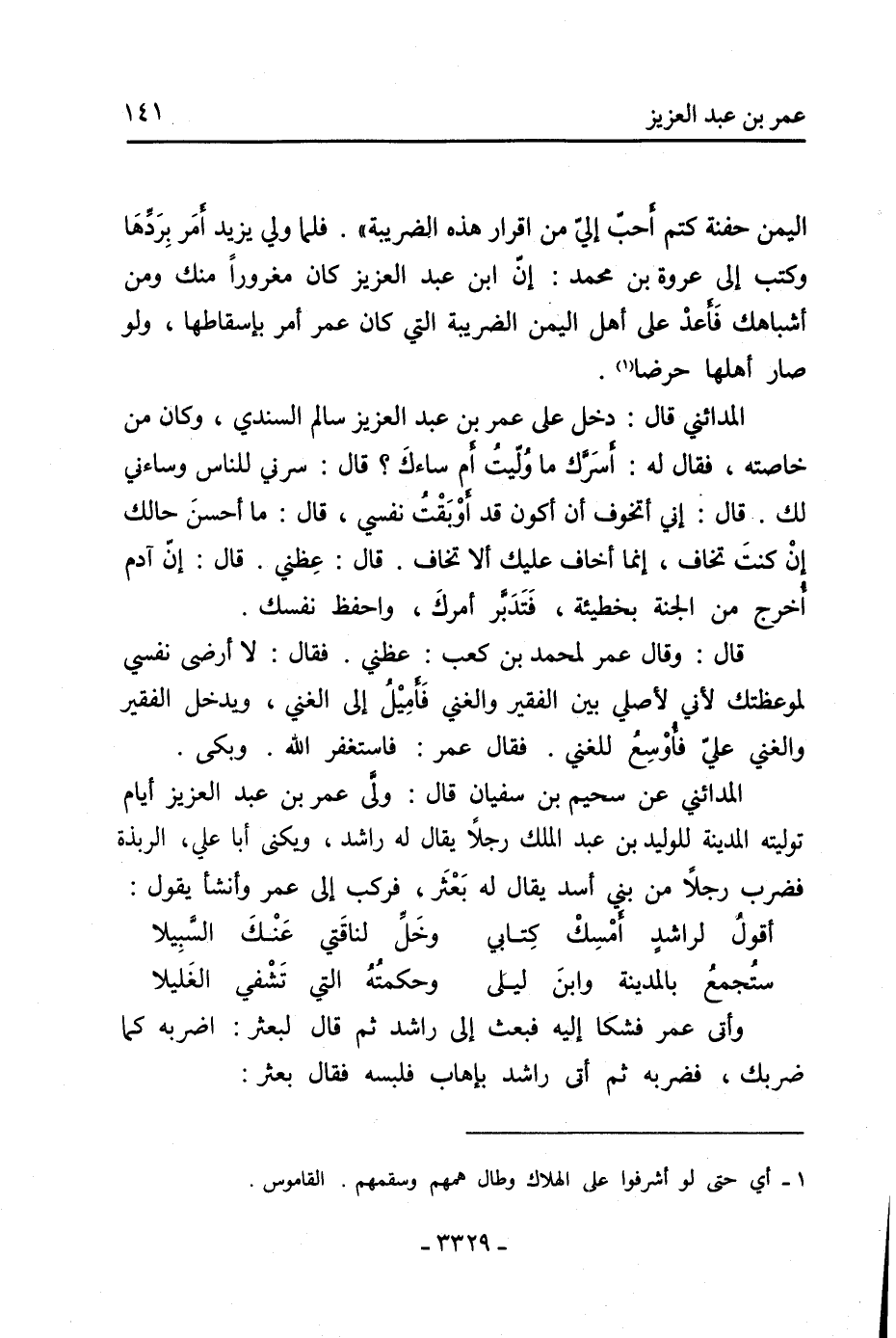 المدائني عن سحيم بن سفيان قال: ولى عمر بن عبد العزيز أيام توليته المدينة للوليد بن عبد الملك رجلًا يقال له راشد، ويكني أبا علي، الربذة فضرب رجلًا من بني أسد يقال له بعثر، فركب إلى عمر وأنشأ يقول: