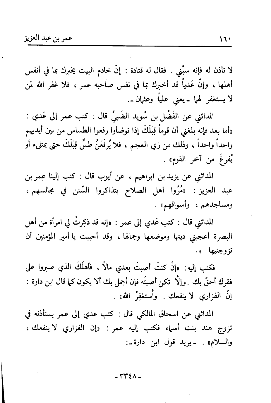 المدائني عن الفضل بن سويد الضبي قال: كتب عمر إلى عدي: