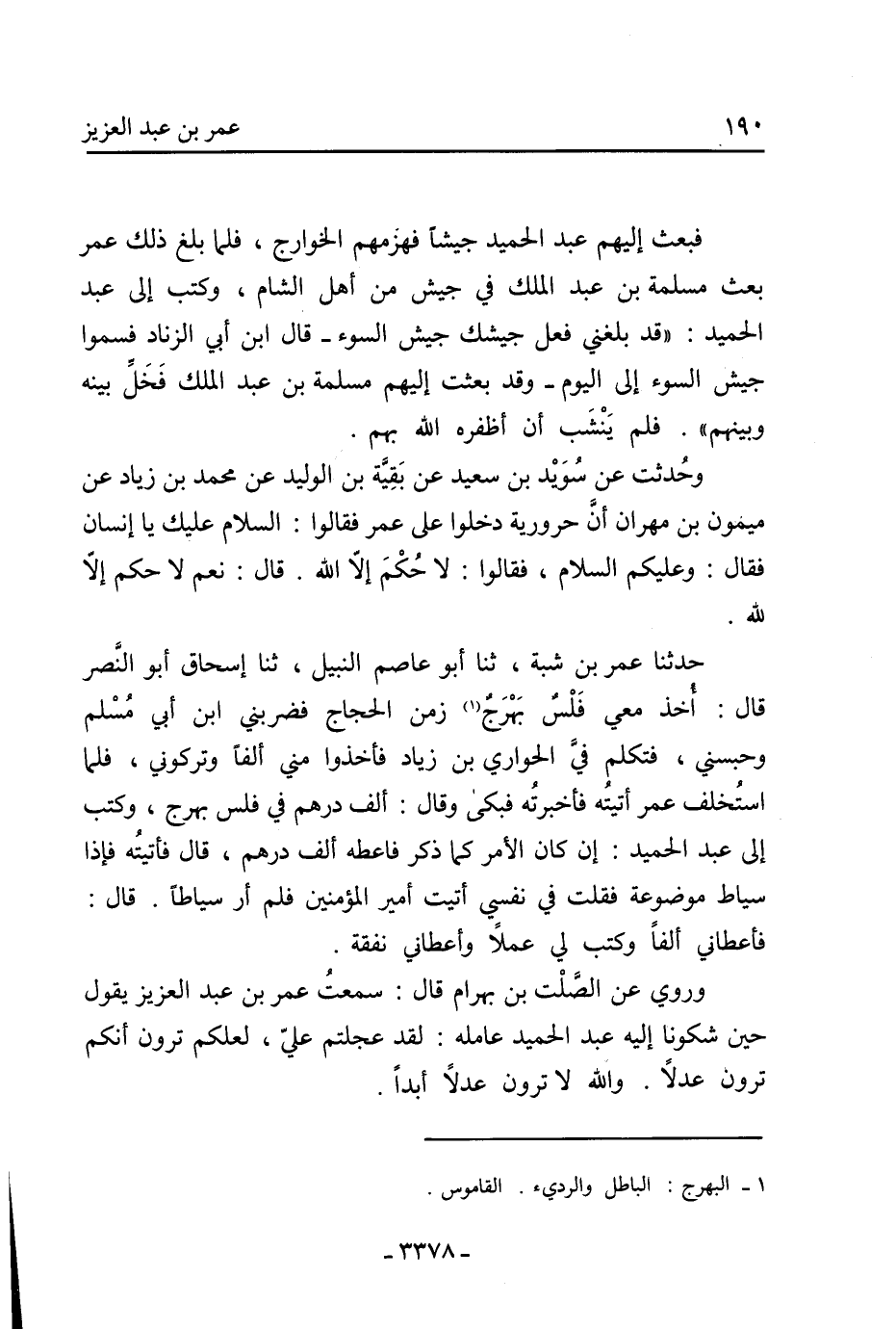 وحدثت عن سويد بن سعيد عن بقية بن الوليد عن محمد بن زياد عن ميمون بن مهران أن حرورية دخلوا على عمر فقالوا: السلام عليك يا إنسان فقال: وعليكم السلام، فقالوا: لا حكم إلا الله. قال: نعم لا حكم إلا لله.