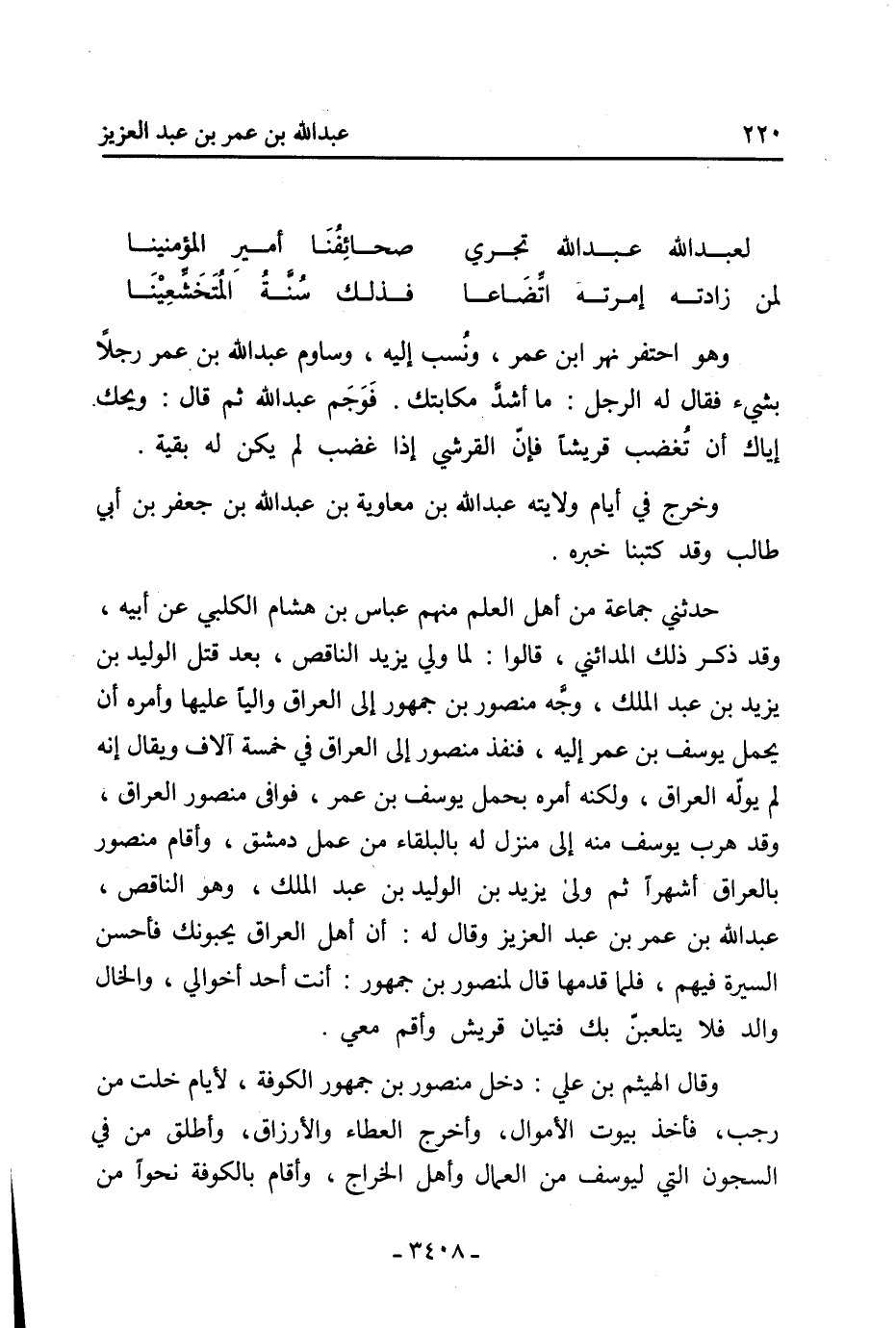 حدثني جماعة من أهل العلم منهم عباس بن هشام الكلبي عن أبيه، وقد ذكر ذلك المدائني، قالوا: لما ولي يزيد الناقص، بعد قتل الْوَلِيد بْن يَزِيد بْنِ عَبْدِ الْمَلِك، وجه منصور بن جمهور إلى العراق واليا عليها وأمره أن يحمل يوسف بن عمر إليه، فنفذ منصور إلى العراق في خمسة آلاف ويقال إنه لم يوله العراق، ولكنه أمره بحمل يوسف بن عمر، فوافى منصور العراق، وقد هرب يوسف منه إلى منزل له بالبلقاء من عمل دمشق، وأقام منصور بالعراق أشهرا ثم ولى يزيد بْن الوليد بْن عَبْد الملك، وهو الناقص، عَبْد اللَّهِ بْن عُمَر بْن عَبْد الْعَزِيزِ وقال له: أن أهل العراق يحبونك فأحسن السيرة فيهم، فلما قدمها قال لمنصور بن جمهور: أنت أحد أخوالي، والخال والد فلا يتلعبن بك فتيان قريش وأقم معي.