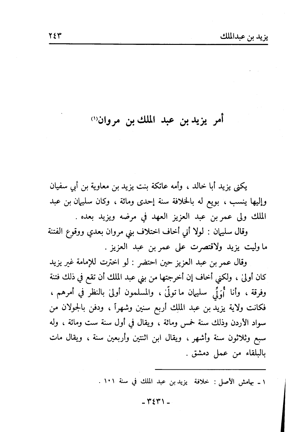 [1] بهامش الأصل: خلافة يزيد بن عبد الملك في سنة 101.
