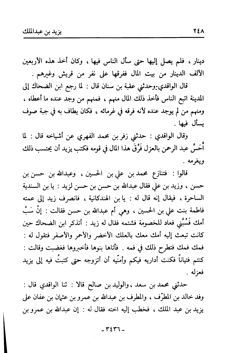 وقال الواقدي: حدثني زفر بن محمد الفهري عن أشياخه قال: لما أحس عبد الرحمن بالعزل فرق هذا المال في قومه فكتب يزيد أن يحتسب ذلك ويغرمه.