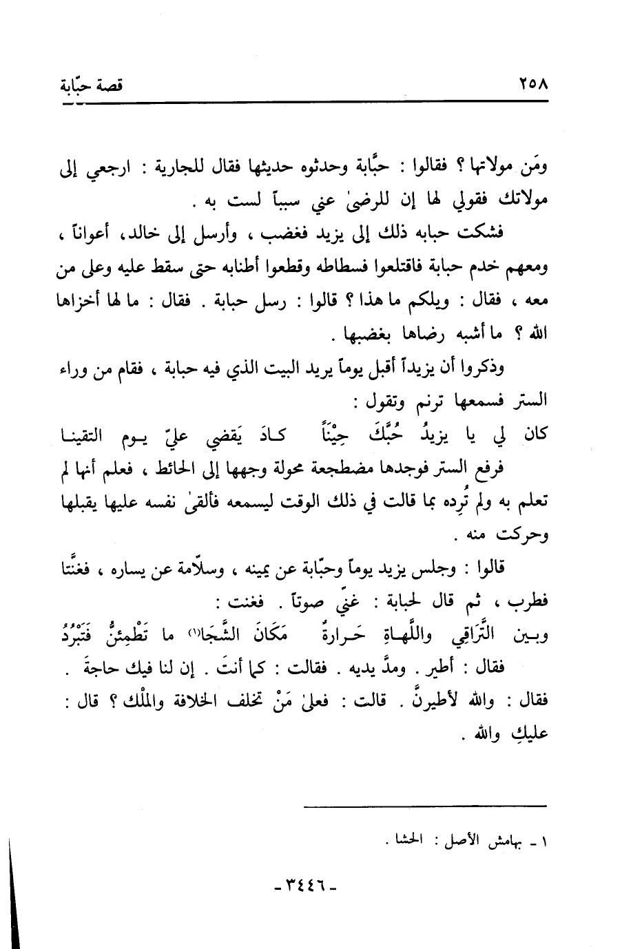قالوا: وجلس يزيد يوما وحبابة عن يمينه، وسلامة عن يساره، فغنتا فطرب، ثم قال لحبابة: غني صوتا. فغنت: