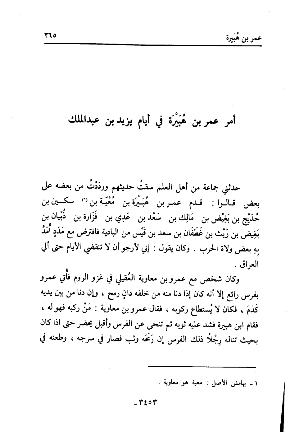حدثني جماعة من أهل العلم سقت حديثهم ورددت من بعضه عَلَى بعض قالوا: قدم عُمَر بْن هبيرة بْن مُعَية بْن [1] سكين بن حديج بْن بغيض بْن مالك بْن سعد بْن عدي بن فزارة بن ذبيان بْن بغيض بْن ريث بْن غطفان بْن سعد بن قيس من البادية فافترض مع مدد أمد به بعض ولاة الحرب. وكان يقول: إني لأرجو أن لا تنقضي الأيام حتى ألي العراق.