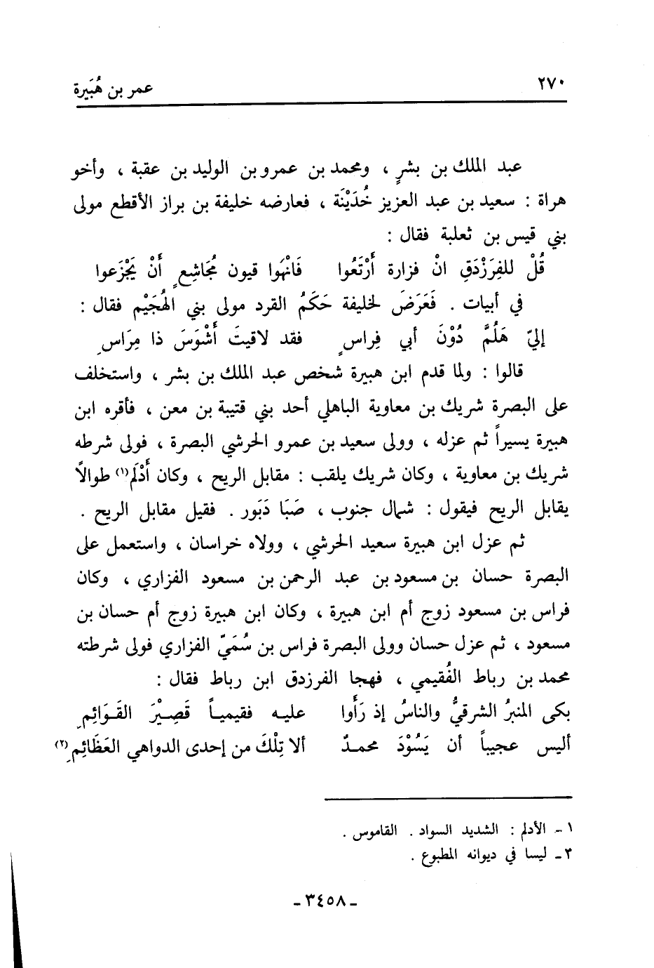 عبد الملك بن بشر، ومحمد بن عمرو بن الوليد بن عقبة، وأخو هراة: سعيد بن عبد العزيز خدينة، فعارضه خليفة بن براز الأقطع مولى بني قيس بن ثعلبة فقال:
