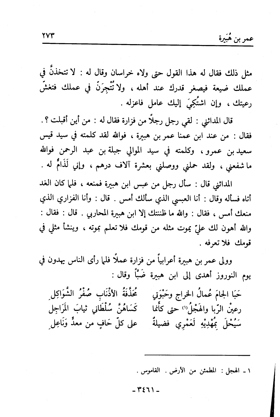 وولى عمر بن هبيرة أعرابيا من فزارة عملًا فلما رأى الناس يهدون في يوم النوروز أهدى إلى ابن هبيرة ضبا وقال: