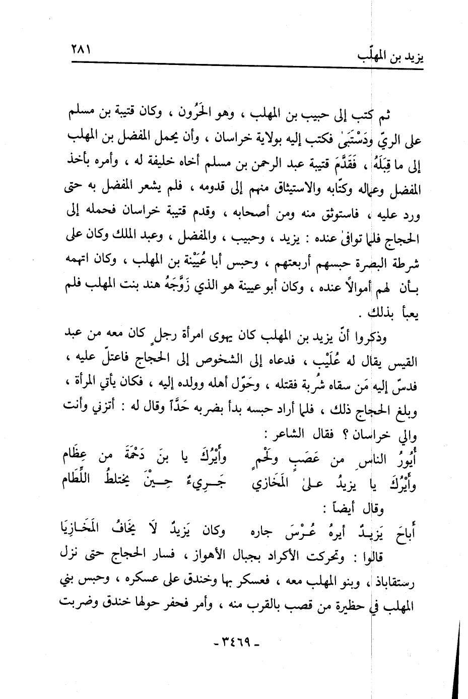 وذكروا أن يزيد بن المهلب كان يهوى امرأة رجل كان معه من عبد القيس يقال له عليب، فدعاه إلى الشخوص إلى الحجاج فاعتل عليه، فدس إليه من سقاه شربة فقتله، وحول أهله وولده إليه، فكان يأتي المرأة، وبلغ الحجاج ذلك، فلما أراد حبسه بدأ بضربه حدا وقال له: أتزني وأنت والي خراسان؟ فقال الشاعر: