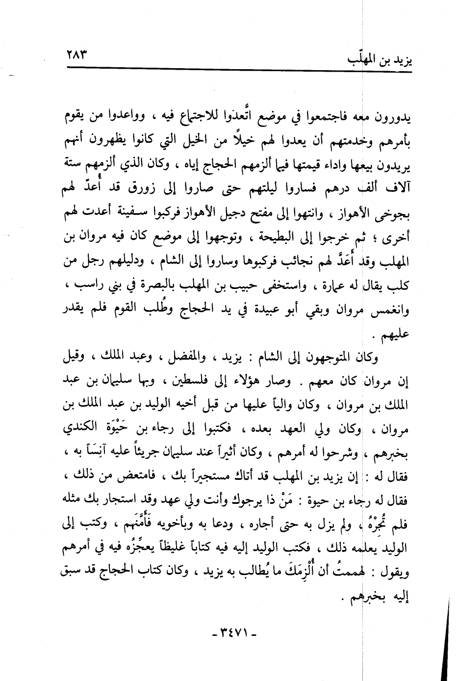 يدورون معه فاجتمعوا في موضع اتعدوا للاجتماع فيه، وواعدوا من يقوم بأمرهم وخدمتهم أن يعدوا لهم خيلا من الخيل التي كانوا يظهرون أنهم يريدون بيعها وأداء قيمتها فيما ألزمهم الحجاج إياه، وكان الذي ألزمهم ستة آلاف ألف درهم فساروا ليلتهم حتى صاروا إلى زورق قد أعد لهم بجوخى الأهواز، وانتهوا إلى مفتح دجيل الأهواز فركبوا سفينة أعدت لهم أخرى، ثم خرجوا إلى البطيحة، وتوجهوا إلى موضع كان فيه مروان بن المهلب وقد أعد لهم نجائب فركبوها وساروا إلى الشام، ودليلهم رجل من كلب يقال له عمارة، واستخفى حبيب بن المهلب بالبصرة في بني راسب، وانغمس مروان وبقي أبو عبيدة في يد الحجاج وطلب القوم فلم يقدر عليهم.