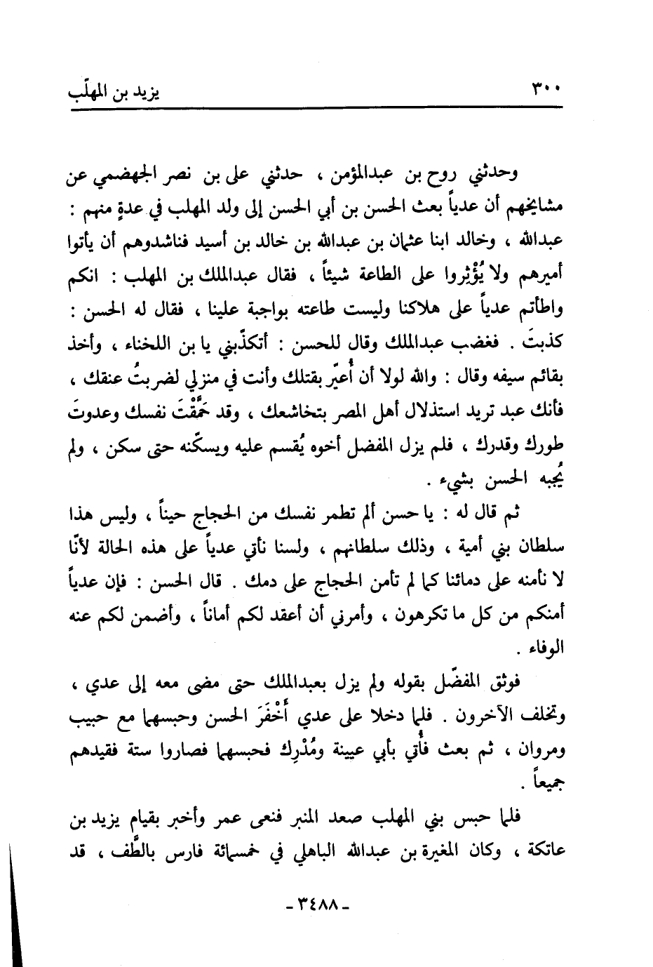 وحدثني رَوْحُ بْنُ عَبْدِ الْمُؤْمِنِ، حَدَّثَنِي عَلِيُّ بْنُ نصر الجهضمي عن مشايخهم أن عديا بعث الحسن بن أبي الحسن إلى ولد المهلب في عدة منهم: