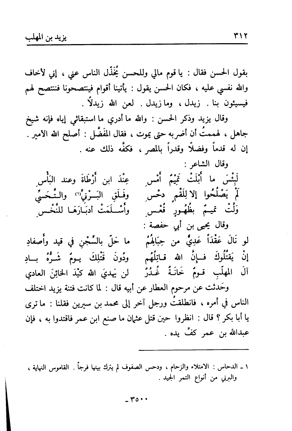 وقال يزيد وذكر الحسن: والله ما أدري ما استبقائي إياه فإنه شيخ جاهل، لهممت أن أضربه حتى يموت، فقال المفضل: أصلح الله الأمير.
