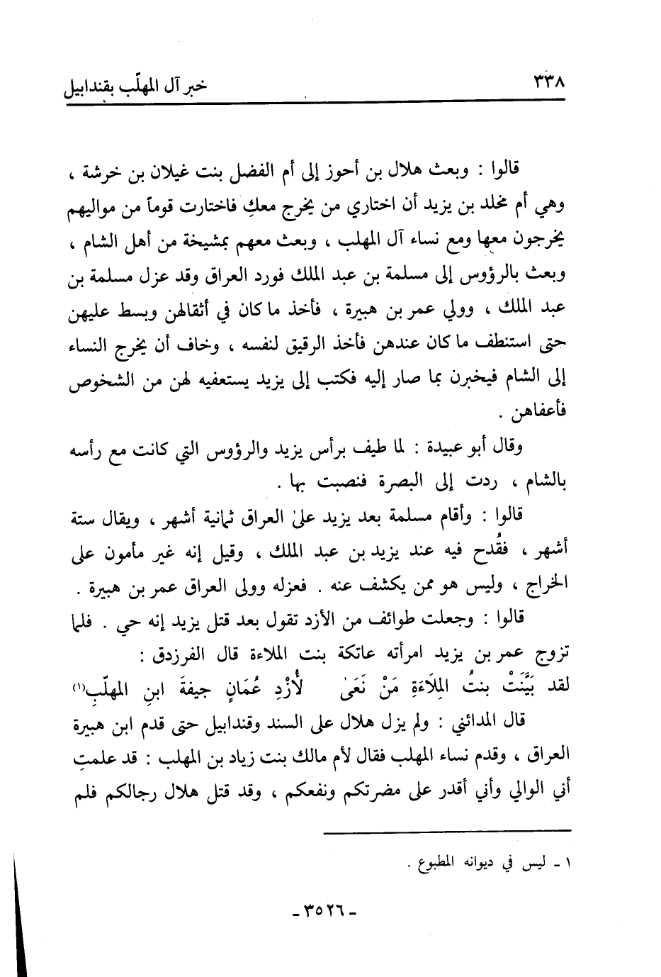 لقد بينت بنت الملاءة من نعى ... لأزد عمان جيفة ابن المهلب [1]