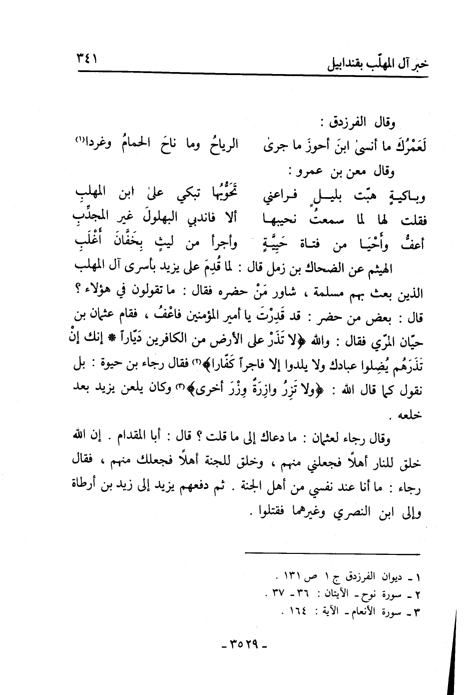 قال: بعض من حضر: قد قدرت يا أمير المؤمنين فاعف، فقام عثمان بن حيان المري فقال: والله (لا تَذَرْ عَلَى الأَرْضِ مِنَ الْكَافِرِينَ دَيَّارًا إِنَّكَ إِنْ تَذَرْهُمْ يُضِلُّوا عِبَادَكَ وَلا يَلِدُوا إلا فاجرا كفّارا) [2] فقال رجاء بن حيوة: بل نقول كما قال الله: (وَلا تَزِرُ وَازِرَةٌ وِزْرَ أُخْرَى) [3] وكان يلعن يزيد بعد خلعه.