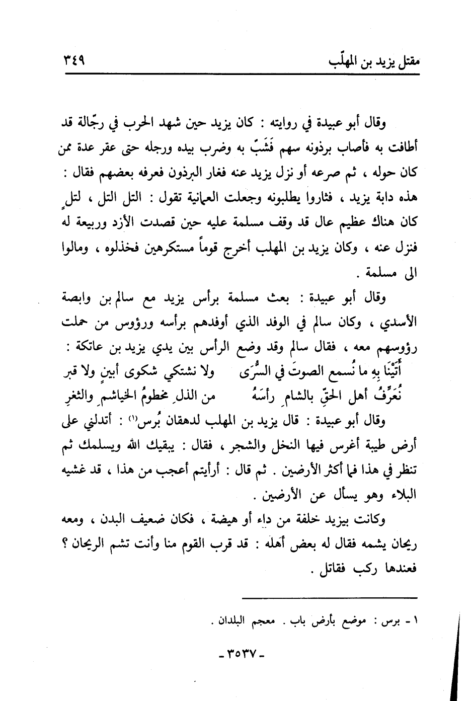 وقال أبو عبيدة: قال يزيد بن المهلب لدهقان برس [1] : أتدلني على أرض طيبة أغرس فيها النخل والشجر، فقال: يبقيك الله ويسلمك ثم تنظر في هذا فما أكثر الأرضين. ثم قال: أرأيتم أعجب من هذا، قد غشيه البلاء وهو يسال عن الأرضين.