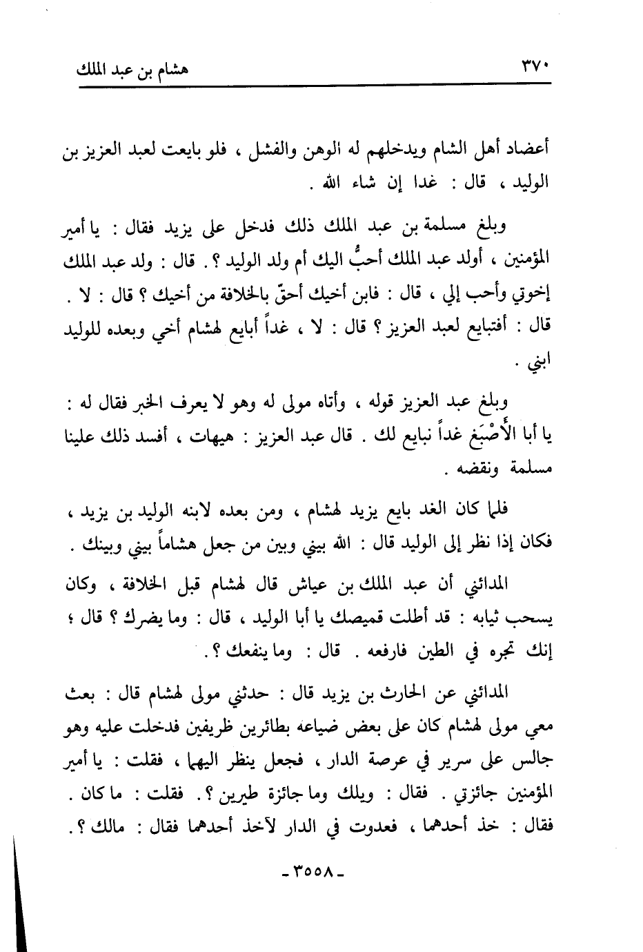 قال: أفتبايع لعبد العزيز؟ قال: لا، غدا أبايع لهشام أخي وبعده للوليد ابني.