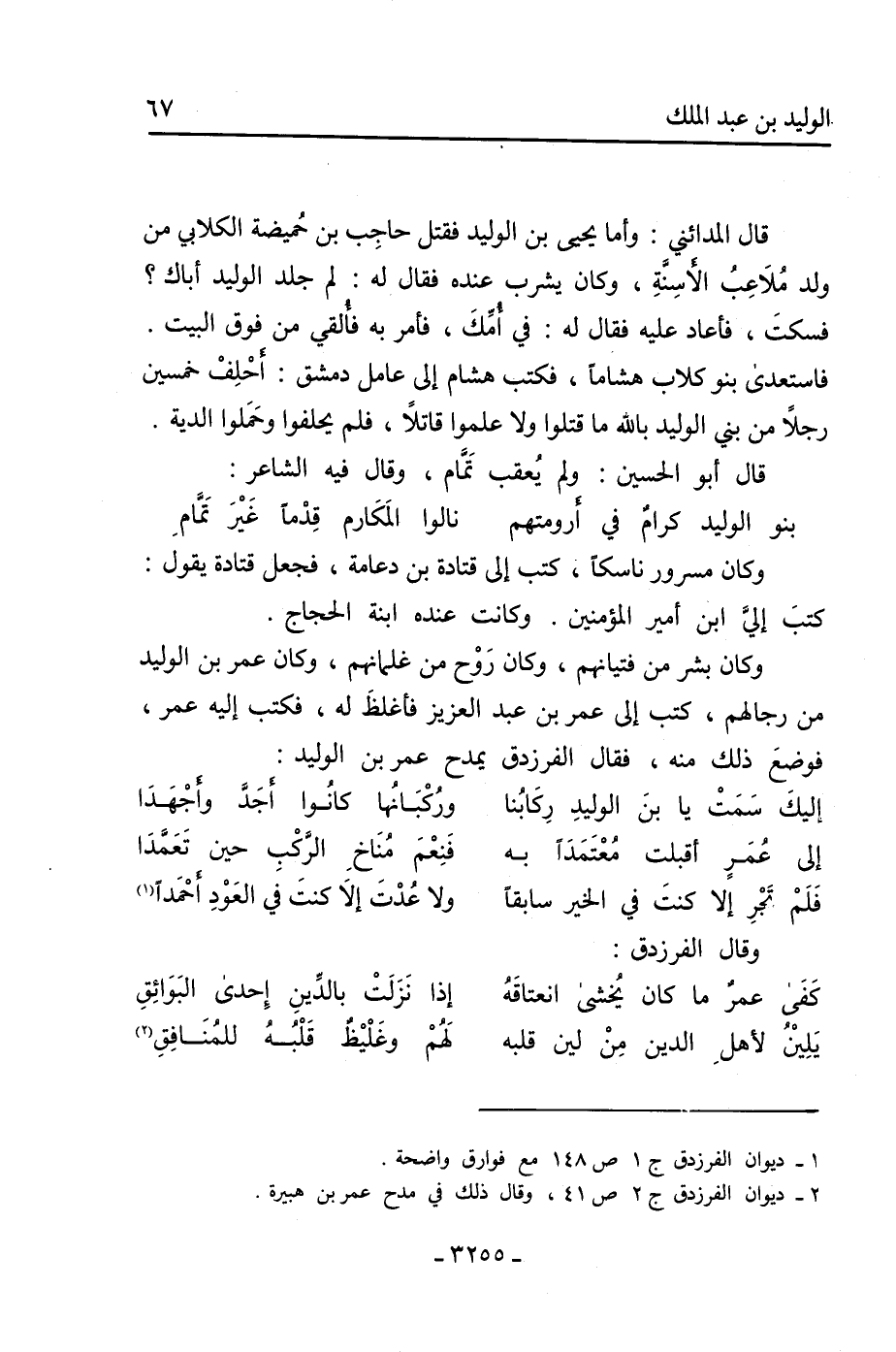 [2] ديوان الفرزدق ج 2 ص 41، وقال ذلك في مدح عمر بن هبيرة.