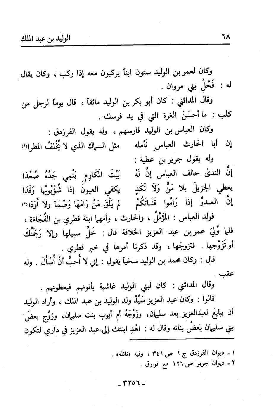 وكان لعمر بن الوليد ستون ابنا يركبون معه إذا ركب، وكان يقال له: فحل بني مروان.