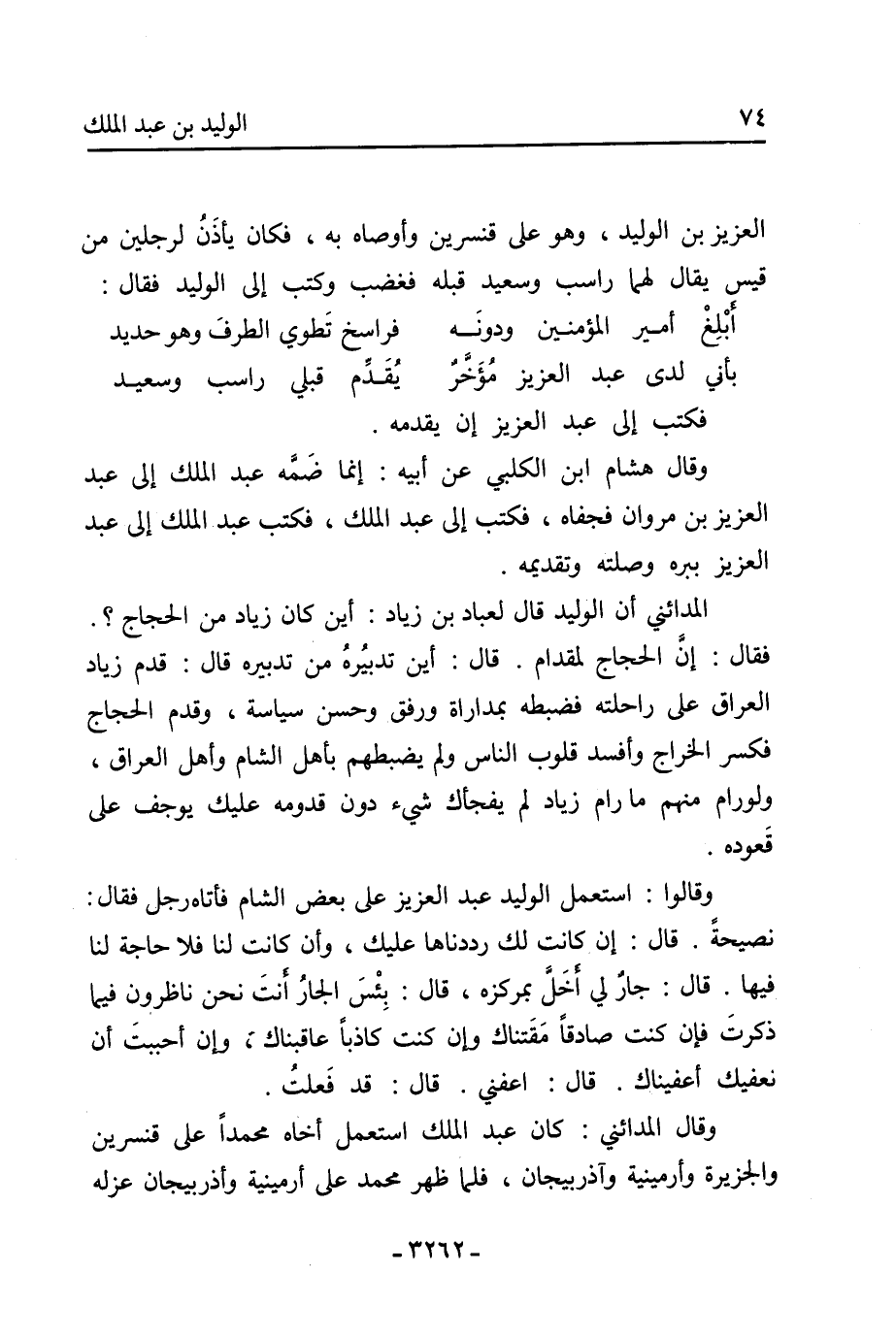 وقالوا: استعمل الوليد عبد العزيز على بعض الشام فأتاه رجل فقال: