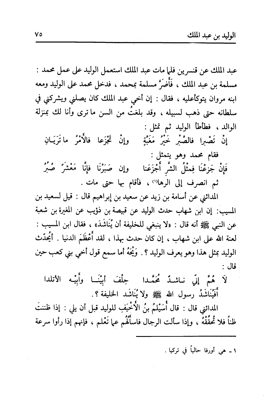 لَعْنَةُ اللَّهِ عَلَى ابْنِ شِهَابٍ، إِنْ كَانَ حَدَّثَ بِهَذَا، لَقَدْ أَعْظَمَ الدُّنْيَا. أَيُحَدِّثُ الْوَلِيدَ بِمِثْلِ هَذَا وَهُوَ يَعْرِفُ الْوَلِيدَ؟. وَيْحَهُ أَمَا سَمِعَ قَوْلَ أخي بني كعب حين قال: